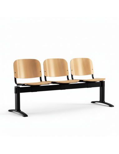 La Bancada Haley Madera 4 Plazas combina la elegancia de la madera natural con una estructura metálica robusta, perfecta para recepciones y zonas de espera amplias.