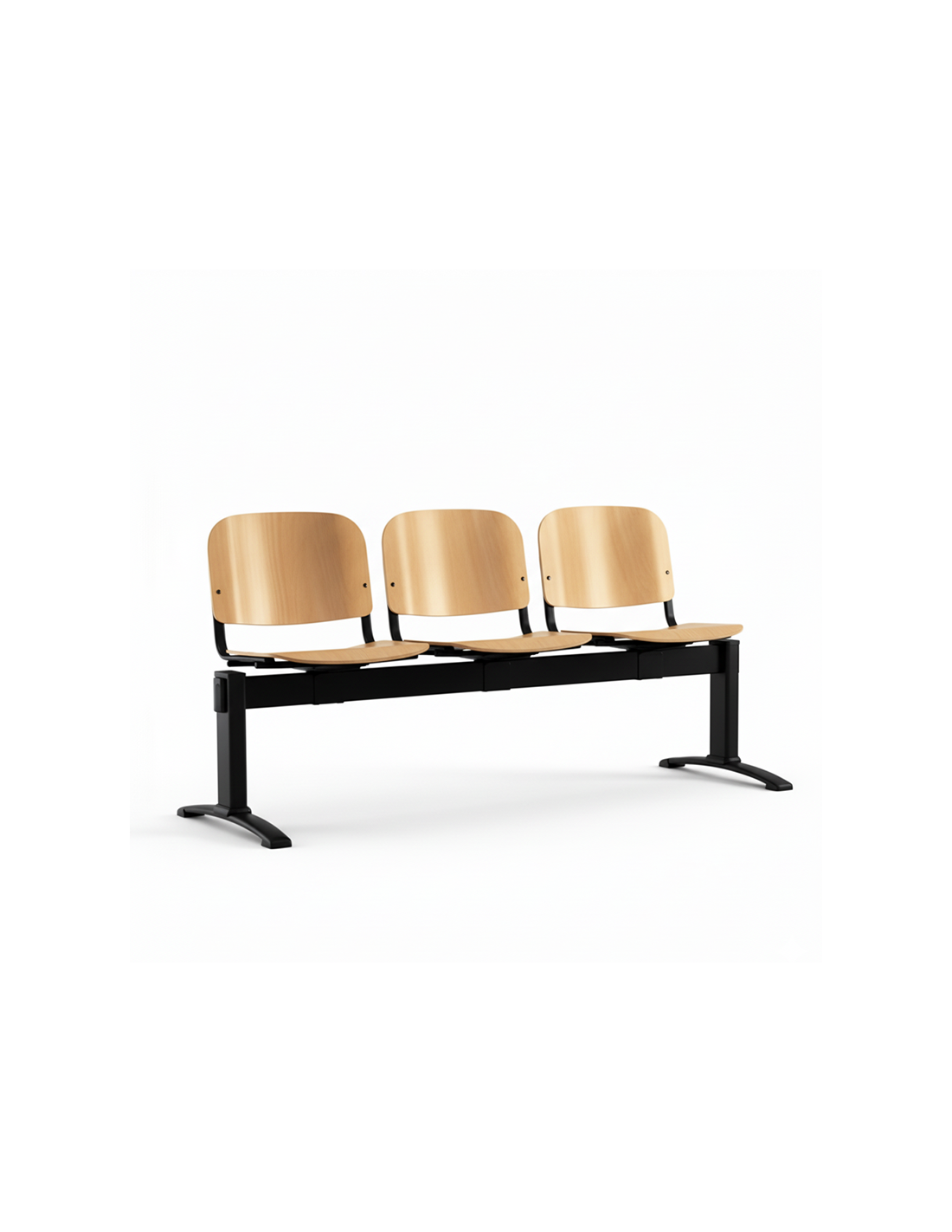La Bancada Haley Madera 2 Plazas combina la calidez del contrachapado de haya natural con una estructura metálica robusta, ofreciendo un asiento moderno, cómodo y duradero para cualquier espacio interior.