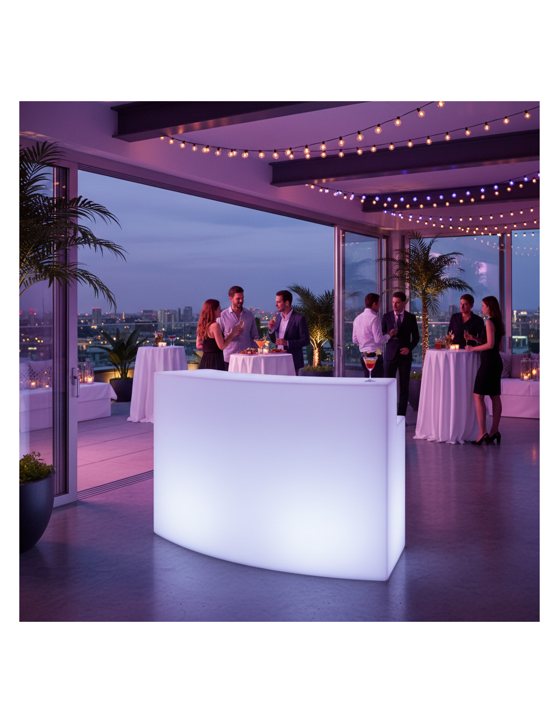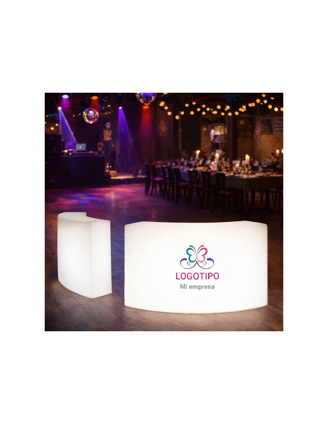 Material Duradero: Fabricado en polietileno, este mostrador es ideal tanto para uso interior como exterior, ofreciendo durabilidad y resistencia a los elementos. Personalización: Ofrece la posibilidad de personalizar con logotipos e imágenes, perfecto para eventos corporativos o fiestas privadas donde la marca o el tema del evento desea destacarse.