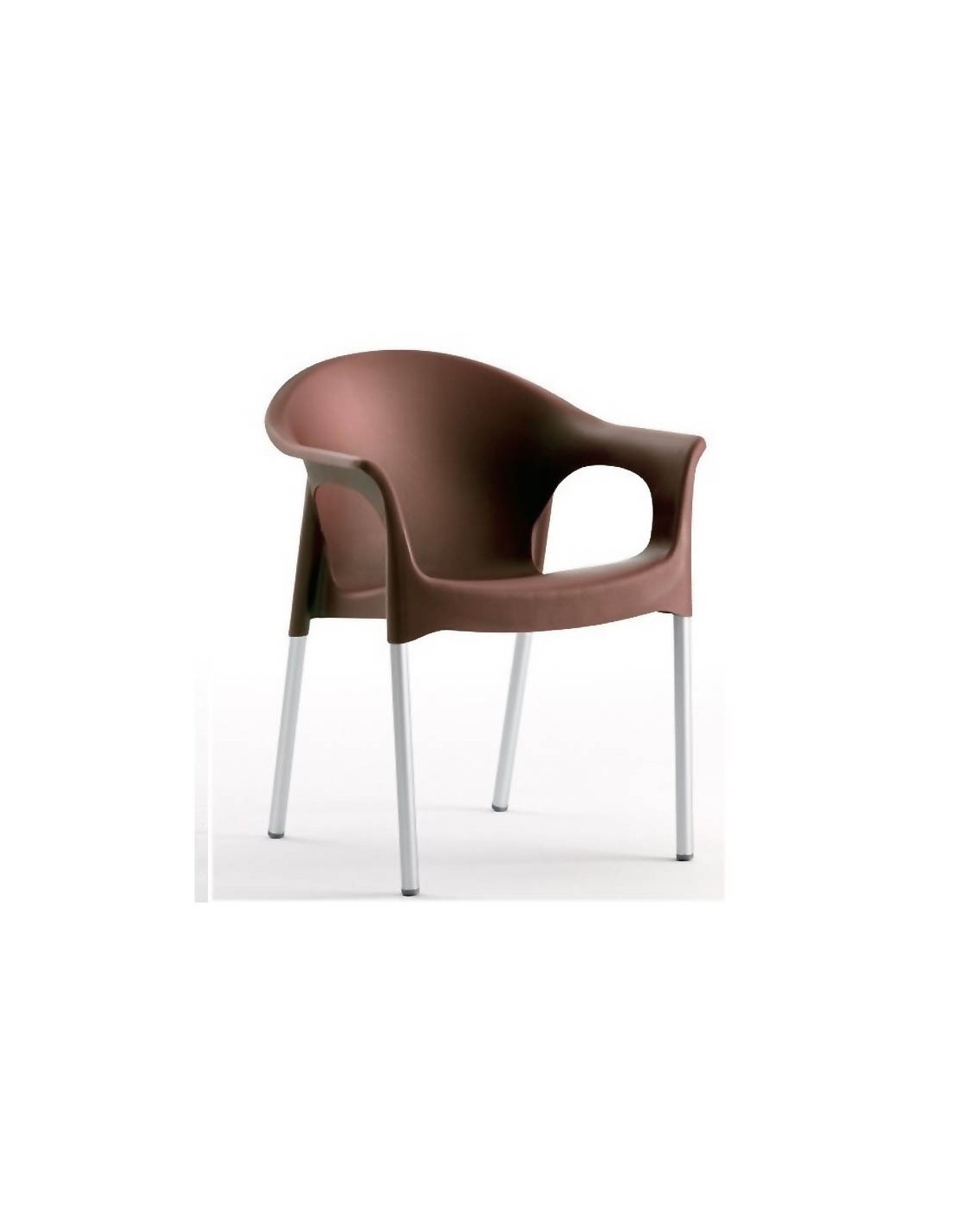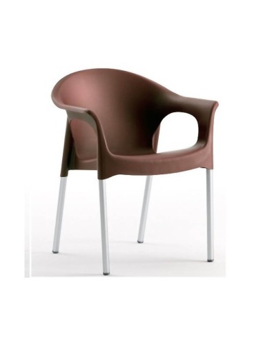 Sillón monoblock en polipropileno y aluminio anodizado. Apilable, ideal para interior y exterior.