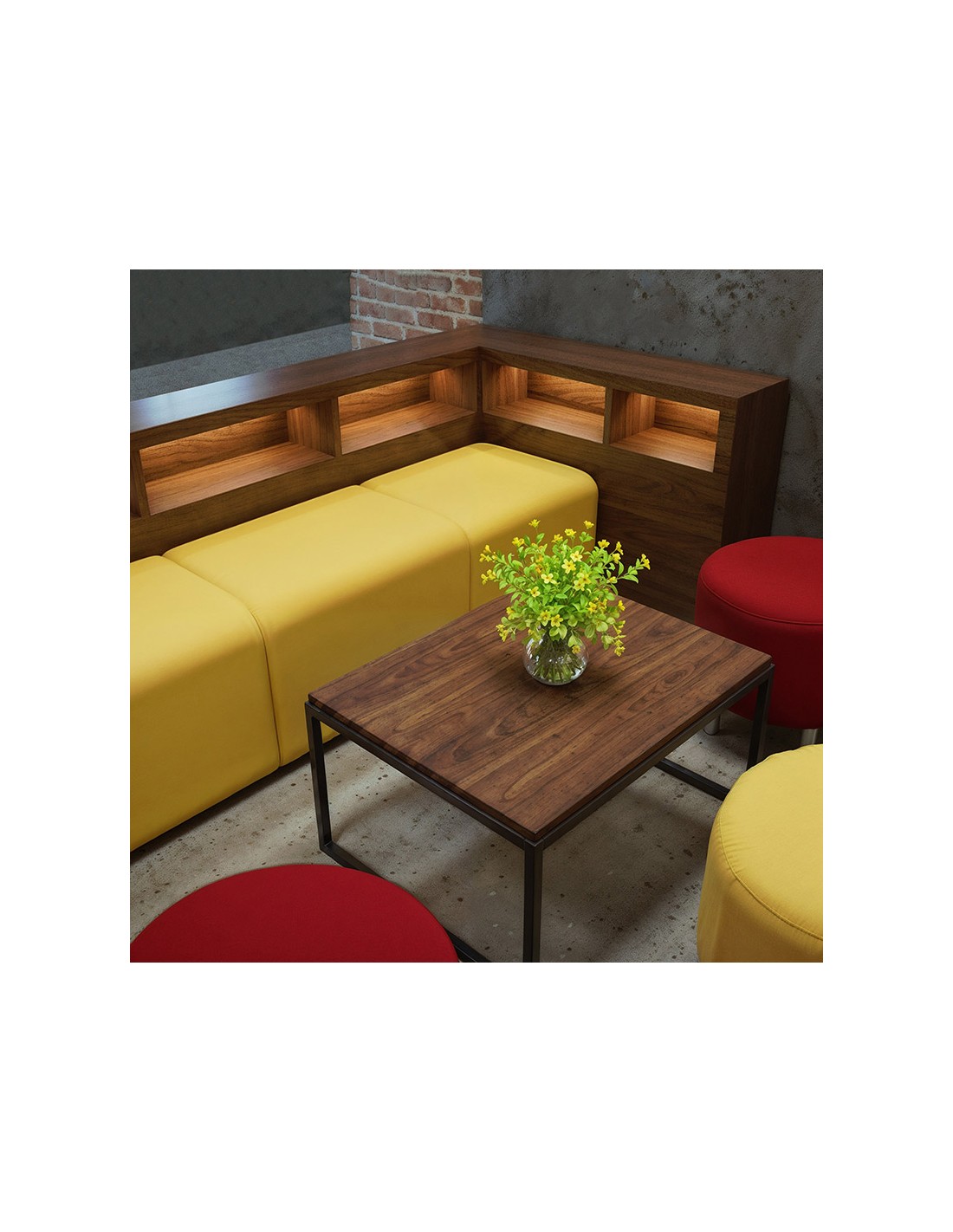 Puedes elegir entre varios colores para personalizarlo según tus preferencias. Su estructura de madera de alta calidad está recubierta de espuma para brindar comodidad, y las patas son de acero, lo que garantiza durabilidad. Además, tienes la opción de tapizarlo en diferentes acabados para adaptarlo a tu decoración. Ideal para espacios interiores.
