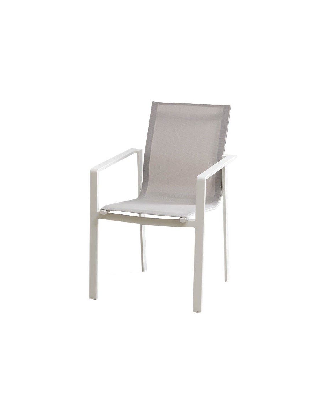Descubra el sillón Agapito, apilable y diseñado para exteriores con estructura de aluminio y respaldo/asiento de textilene. Sus reposabrazos inclinados ofrecen comodidad y estilo moderno, perfecta para terrazas y jardines. Con patas de aluminio y asiento de textilene, esta silla garantiza durabilidad y resistencia. Proteja su inversión cubriéndola de los elementos atmosféricos.