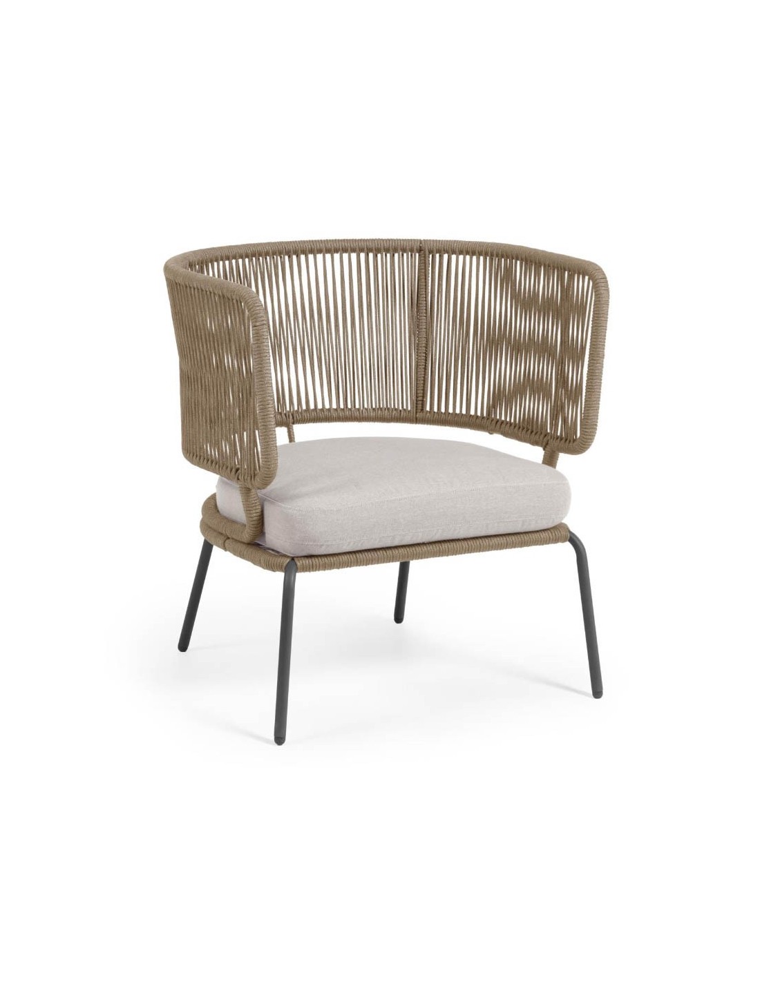 Embellece tus espacios con la Butaca Bardomiano, combinando la robustez del acero galvanizado con la sofisticación de la cuerda terracota.