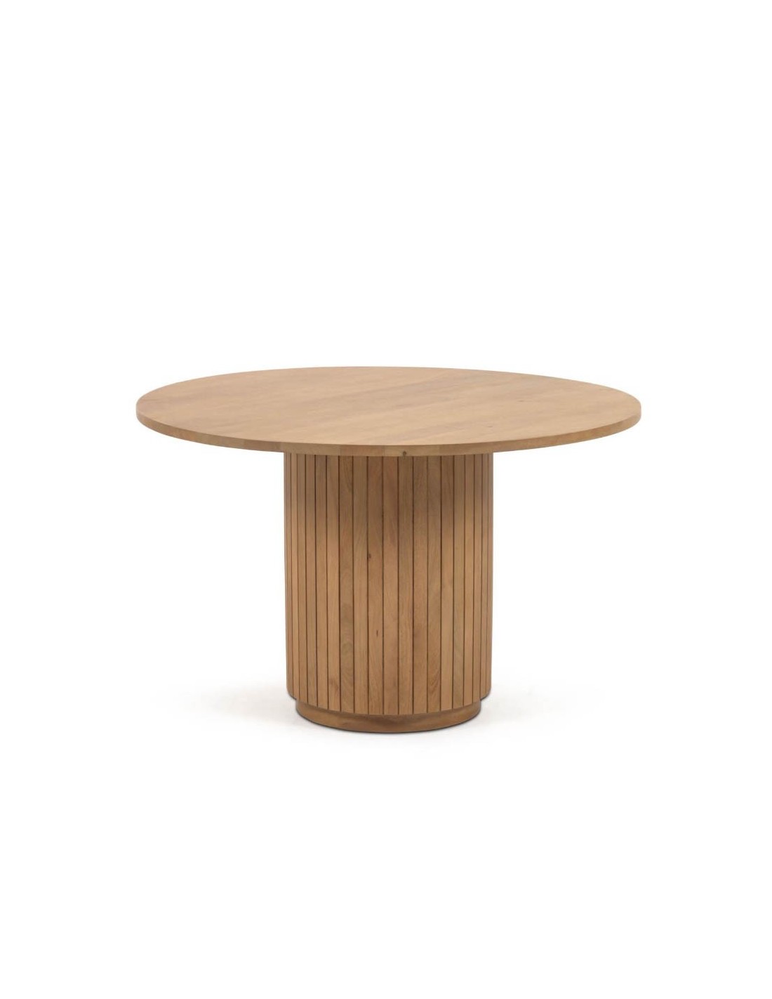 La Mesa Diega R es una elegante mesa auxiliar redonda, creada artesanalmente con madera maciza de mango sostenible.