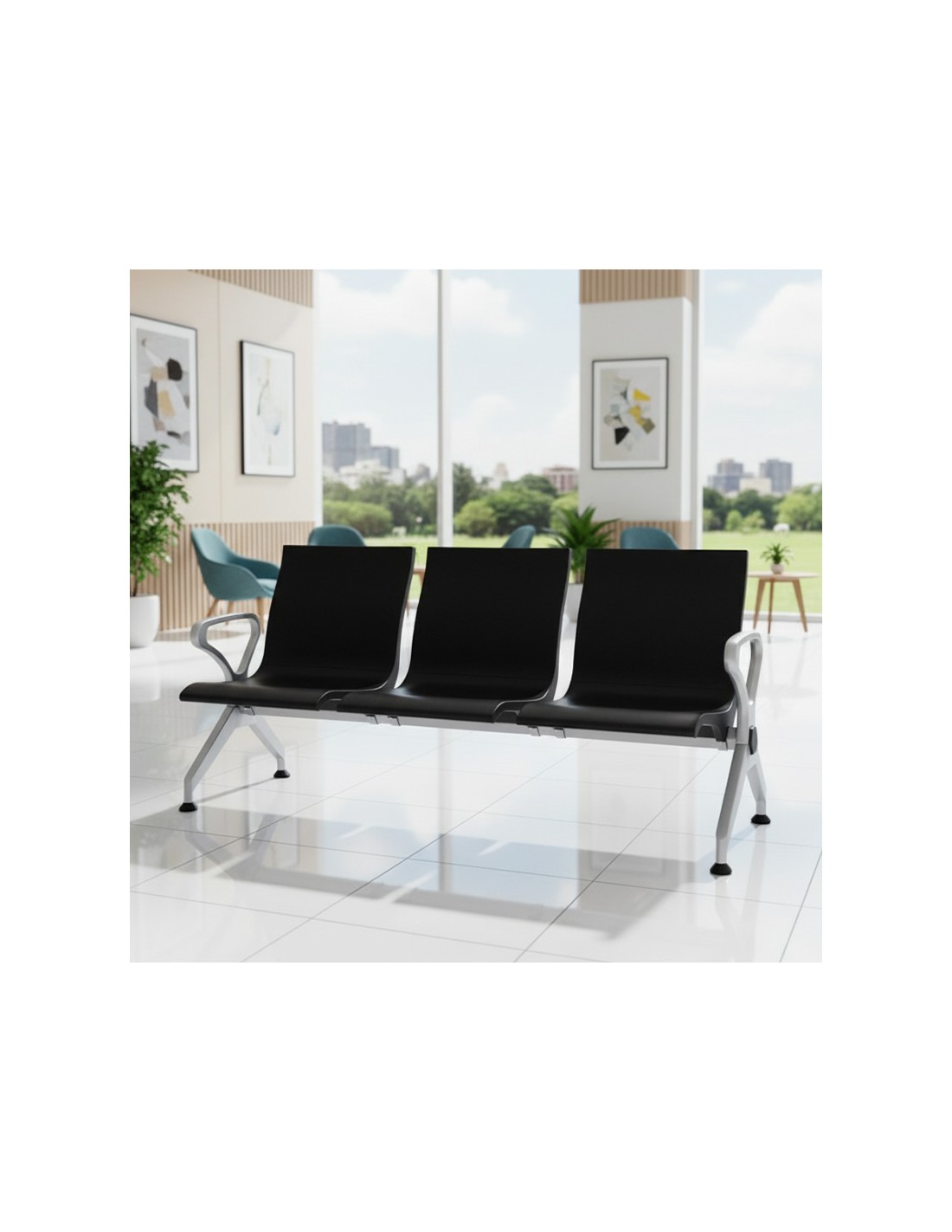 La Bancada Bam Bam 4P combina durabilidad y diseño moderno, perfecta para áreas de alto tráfico como aeropuertos, hospitales y estaciones de transporte.