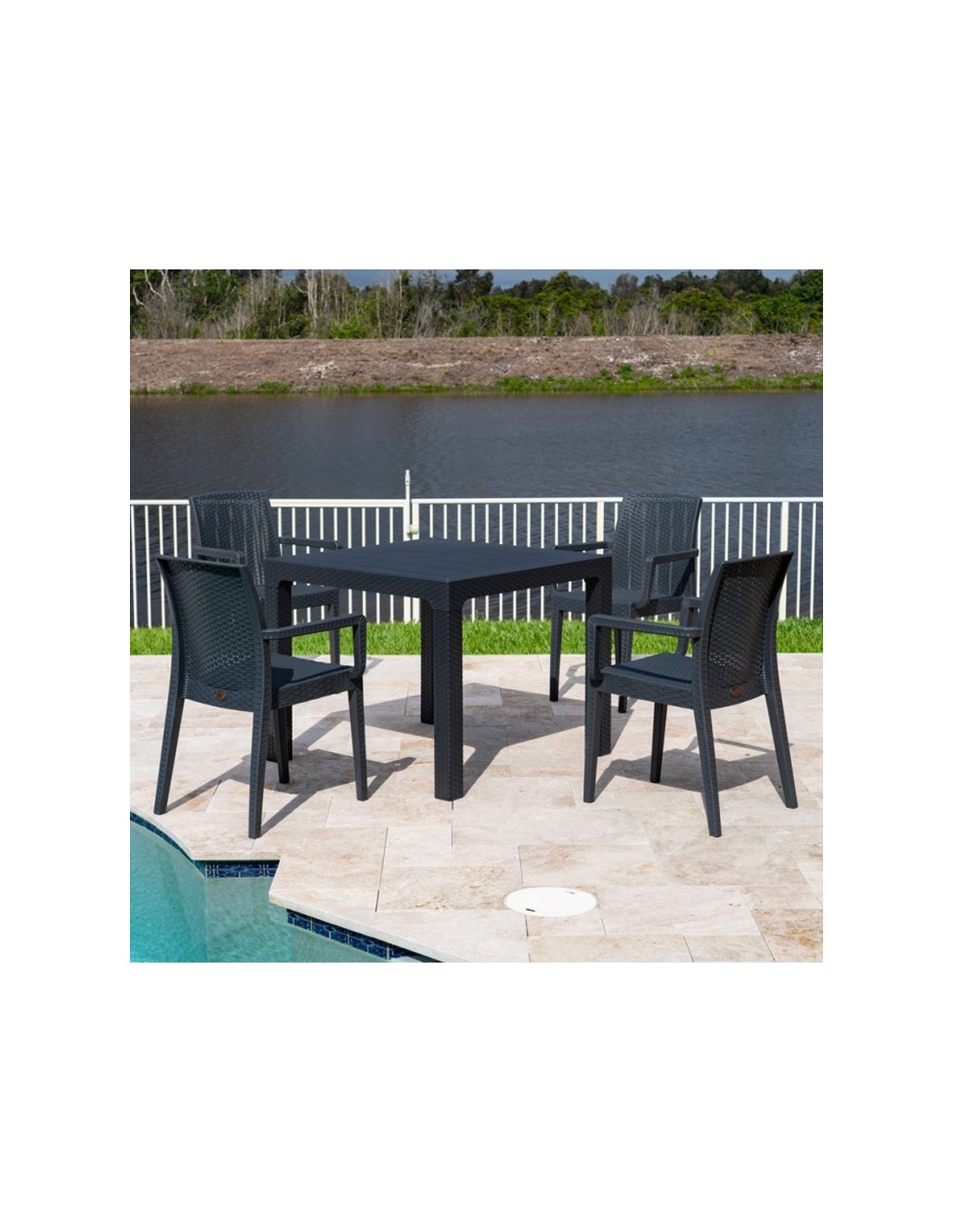 Descubre la Mesa Froilana, con un sofisticado diseño de imitación a rattán en polipropileno. Perfecta para interiores y exteriores, disponible en varios colores y tamaños.