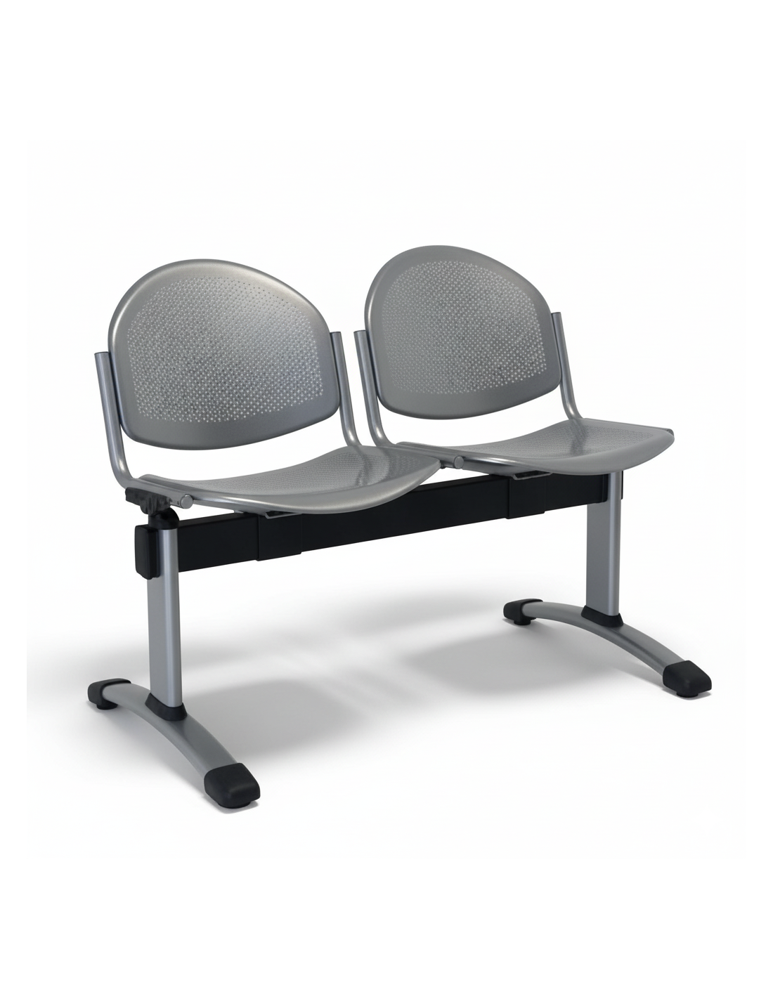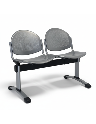 La Bancada Koma 5 Plazas ofrece máxima capacidad con asiento y respaldo en chapa multiperforada gris metalizado y estructura de acero epoxi.
