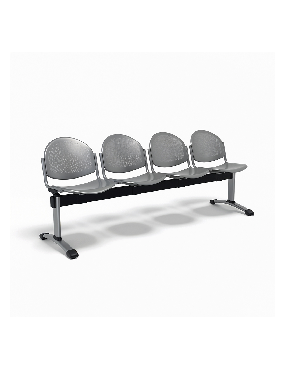 La Bancada Koma 5 Plazas ofrece máxima capacidad con asiento y respaldo en chapa multiperforada gris metalizado y estructura de acero epoxi.