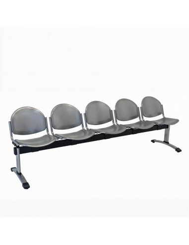 La Bancada Koma 3 Plazas ofrece asiento y respaldo en chapa multiperforada gris metalizado y estructura de acero epoxi, ideal para salas de espera y entornos públicos.