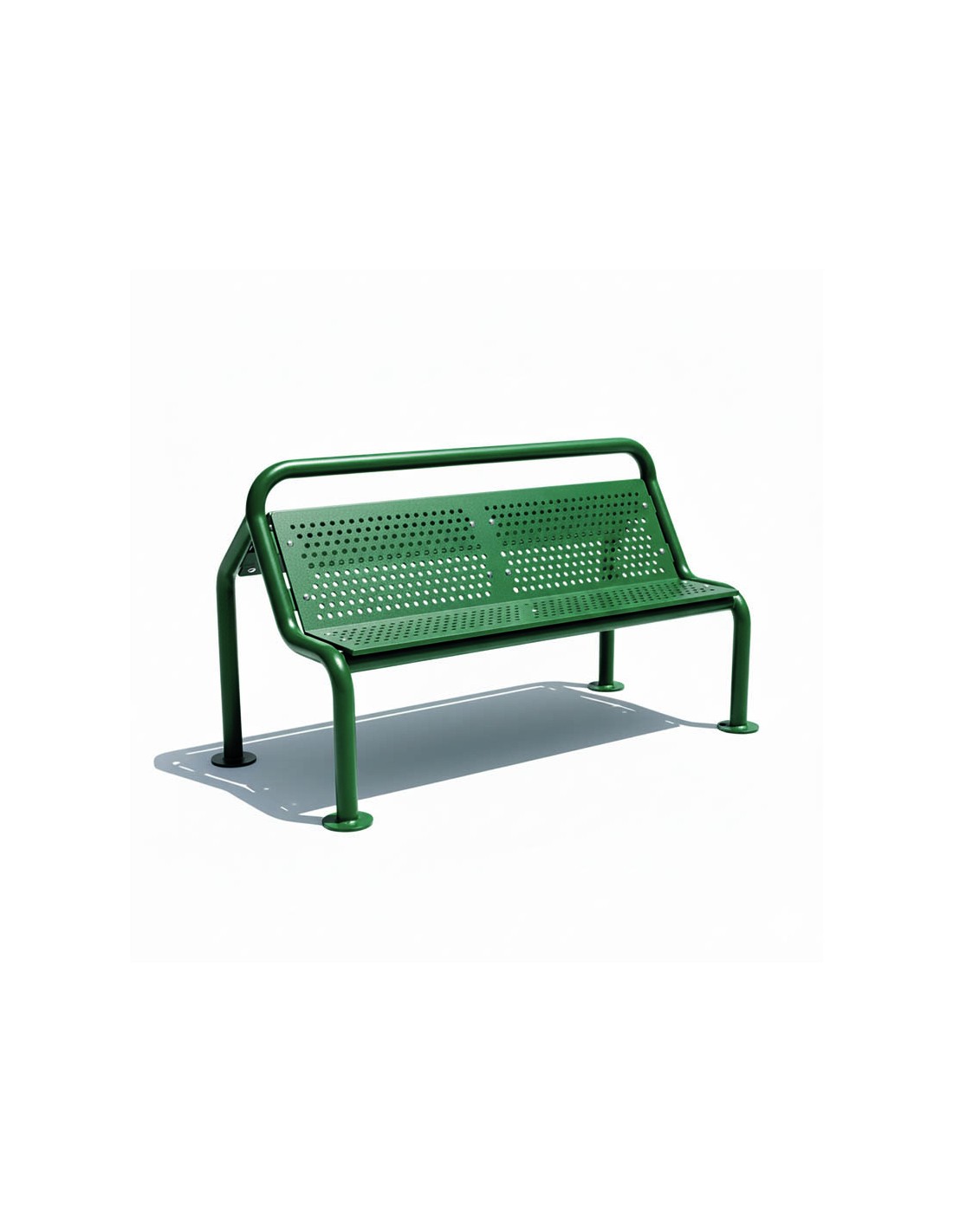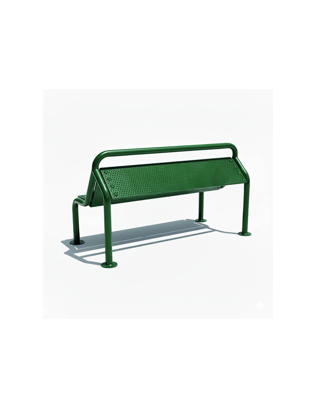 Modelo en acero inoxidable ideal para uso intensivo en espacios urbanos y zonas públicas de alta rotación. Combinación de banco tradicional por un lado y apoyo isquiático por el lado posterior.
