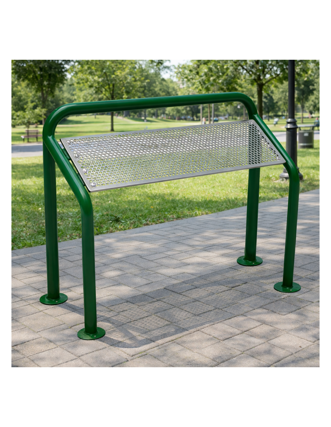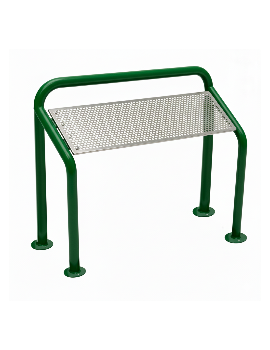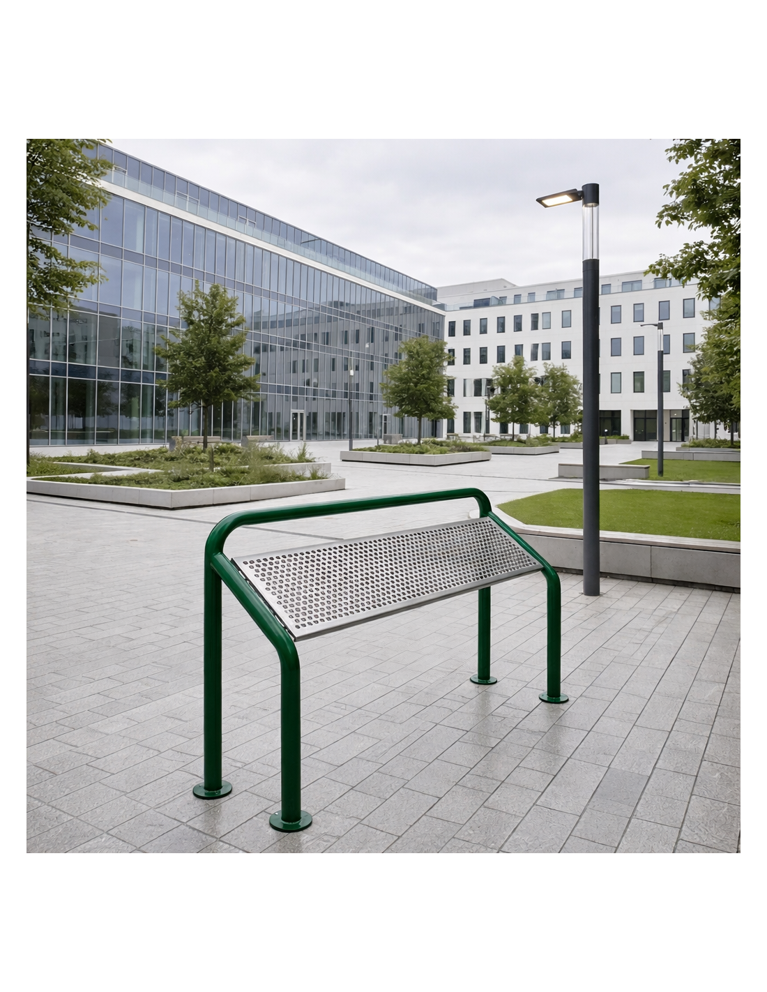 Modelo isquiático de líneas limpias y ergonómicas, diseñado para ofrecer apoyo rápido y eficiente en espacios públicos. Construcción robusta en acero lacados en resina epoxi en el color a seleccionar para uso exterior prolongado.